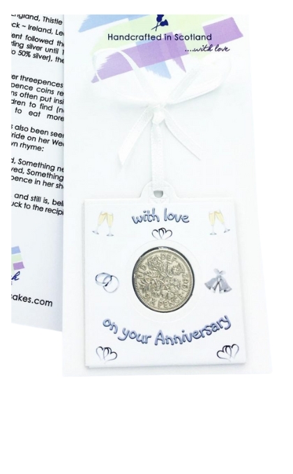 A ‘lucky’ silver sixpence makes the ideal little gift to acknowledge a Wedding Anniversary.