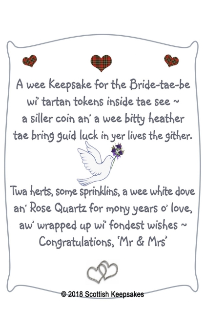 -  Verse card with a beautiful unique rhyme in Scots dialect (see ‘other information’ for glossary *) for the new Mr & Mrs (see gallery pic) © scottishkeepsakes